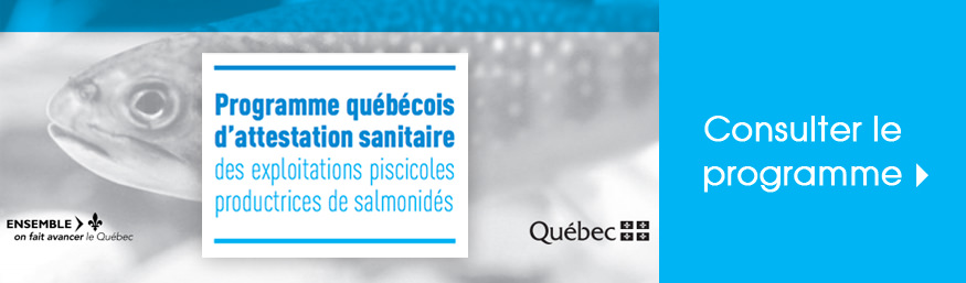 Ainsi, plusieurs pisciculteurs québécois participent volontairement au « Programme québécois d'attestation sanitaire des exploitations piscicoles productrices de salmonidés » mis sur pied par le MAPAQ.